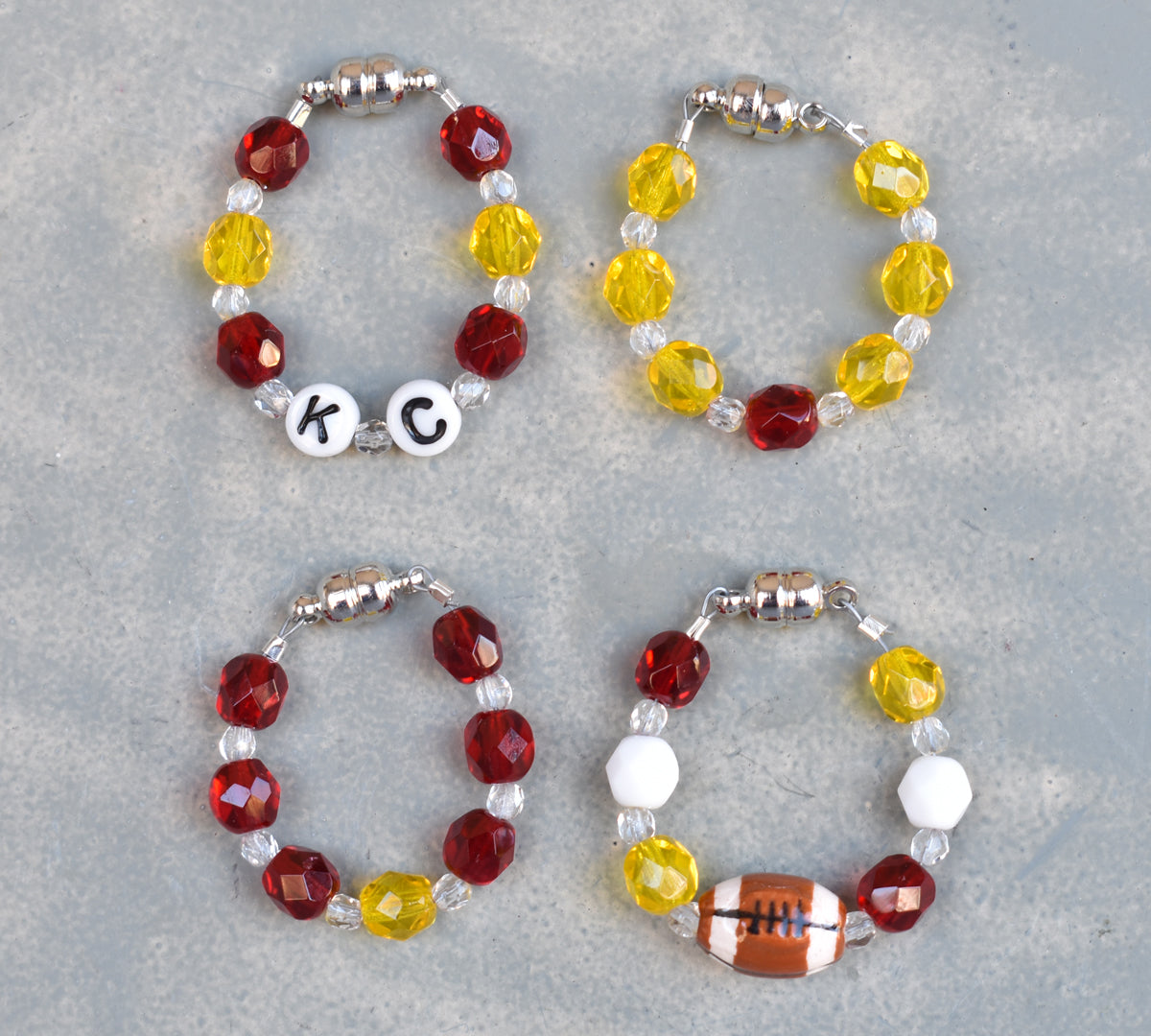 Keep the wine flowing and cheer on our Kansas City Chiefs with Loop & Bauble’s KC Chiefs Stem Gems™! Designed with love and quality materials, this set features porcelain “KC” beads, a hand-painted, ceramic football bead, and beautiful, fire-polished, faceted glass beads in the team colors of red and yellow.